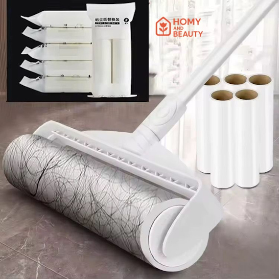 تخلصي من وبر الحيوانات، الشعر، والغبار بسهولة مع رول التنظيف اللاصق العملي!