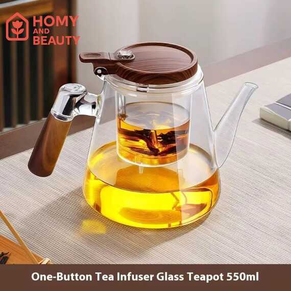 إبريق شاي أنيق مصنوع من زجاج شفاف عالي الجودة، مزوّد بمصفاة داخلية لتحضير الشاي والأعشاب بسهولة. تصميمه العصري مع لمسة خشبية فاخرة يجعله قطعة عملية وجميلة في نفس الوقت، مثالي للاستخدام اليومي أو لتقديم الضيافة بأناقة.